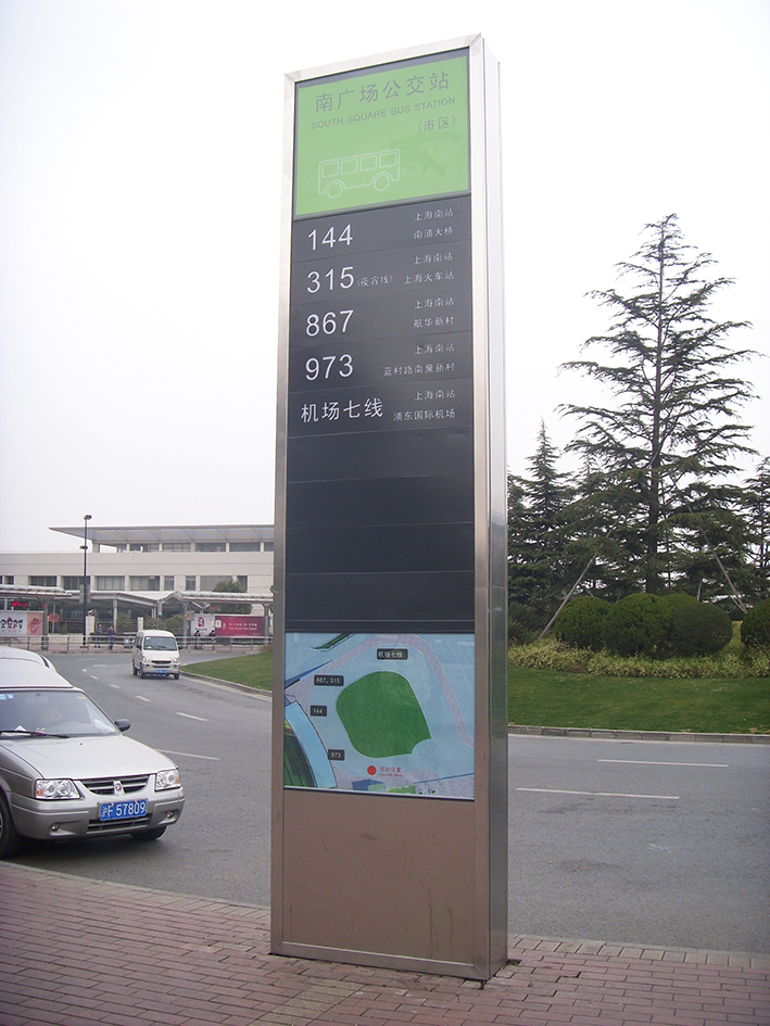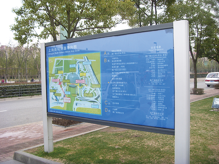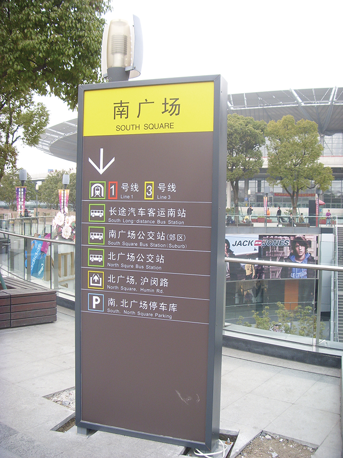 • 產品描述:鐵路上海南站廣場是2006年投入使用的鐵路上海南站的配套設施,它是連接鐵路、長途客運、公交和兩條地鐵線路的換乘樞紐。隨著周邊設施不斷完善,導向標識系統歷經多次方案優化調整,于2008年底全部安裝完成。
